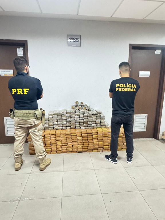 A Polícia Federal, em ação conjunta com a Polícia Rodoviária Federal, apreendeu 383 kg de
