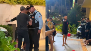 A situação só foi controlada com a chegada da Polícia Militar, que dispersou os envolvidos. Em meio à confusão, um dos seguranças chegou a dizer: “Tava usando tornozeleira ameaçando os outros”, em referência a um dos rapazes.