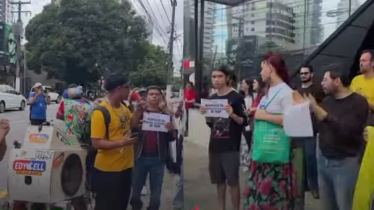 Movimentos sociais, estudantes e lideranças políticas realizam uma manifestação na manhã desta quarta-feira (15), em Belém, após a divulgação de um caso de agressão contra um homem em situação de rua. O ato ocorre em frente ao polo de Direito do Centro Universitário do Estado do Pará (Cesupa), na Avenida Alcindo Cacela.
