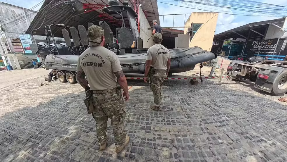 Chegou em Belém uma lancha tática blindada da Polícia Federal, operada pelo Comando de Operações