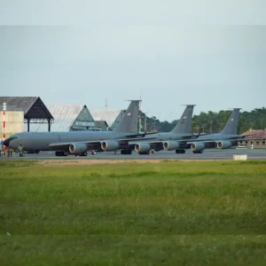 Três KC-135R Stratotanker da Força Aérea dos Estados Unidos fizeram uma parada estratégica em Belém, no Pará, durante uma missão de reabastecimento de caças F-16 da Argentina. A operação garantiu que os jatos completassem a travessia do Atlântico com autonomia e segurança.