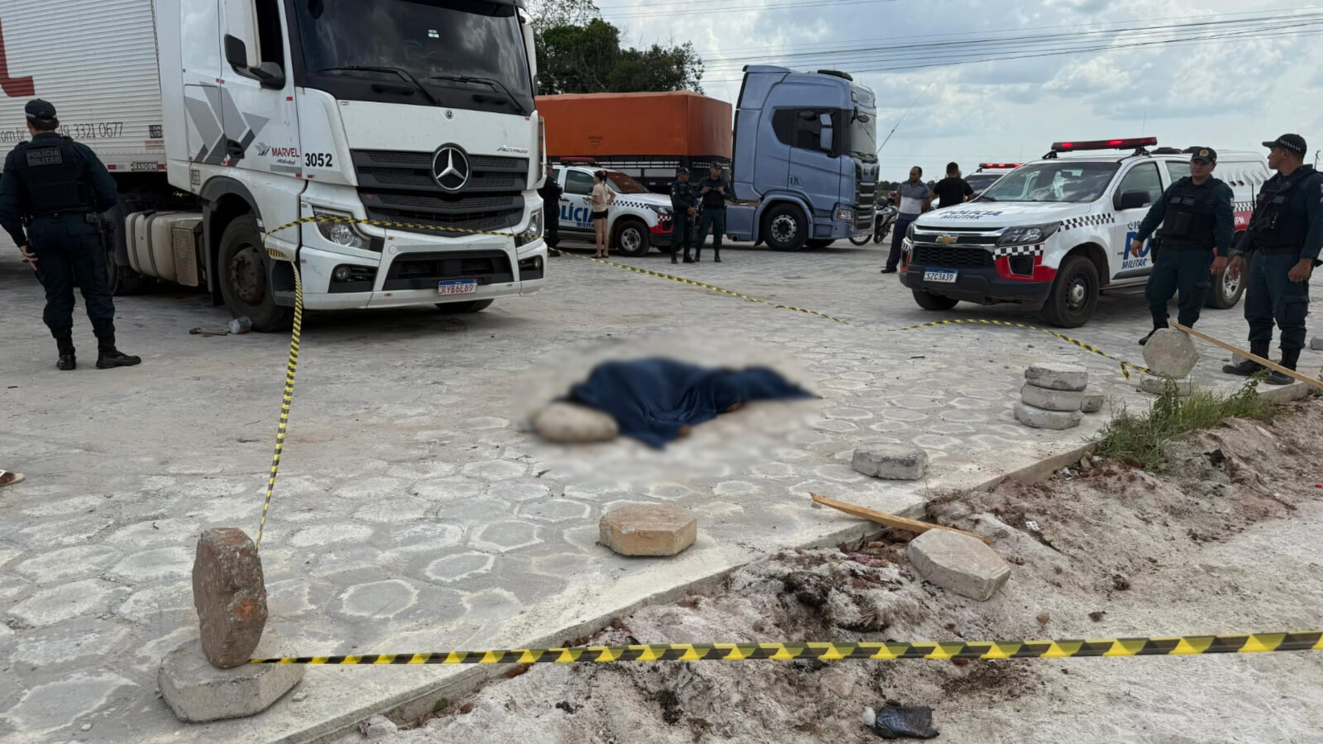 O corpo da vítima permaneceu no local até a chegada do Instituto Médico Legal (IML) para remoção.
