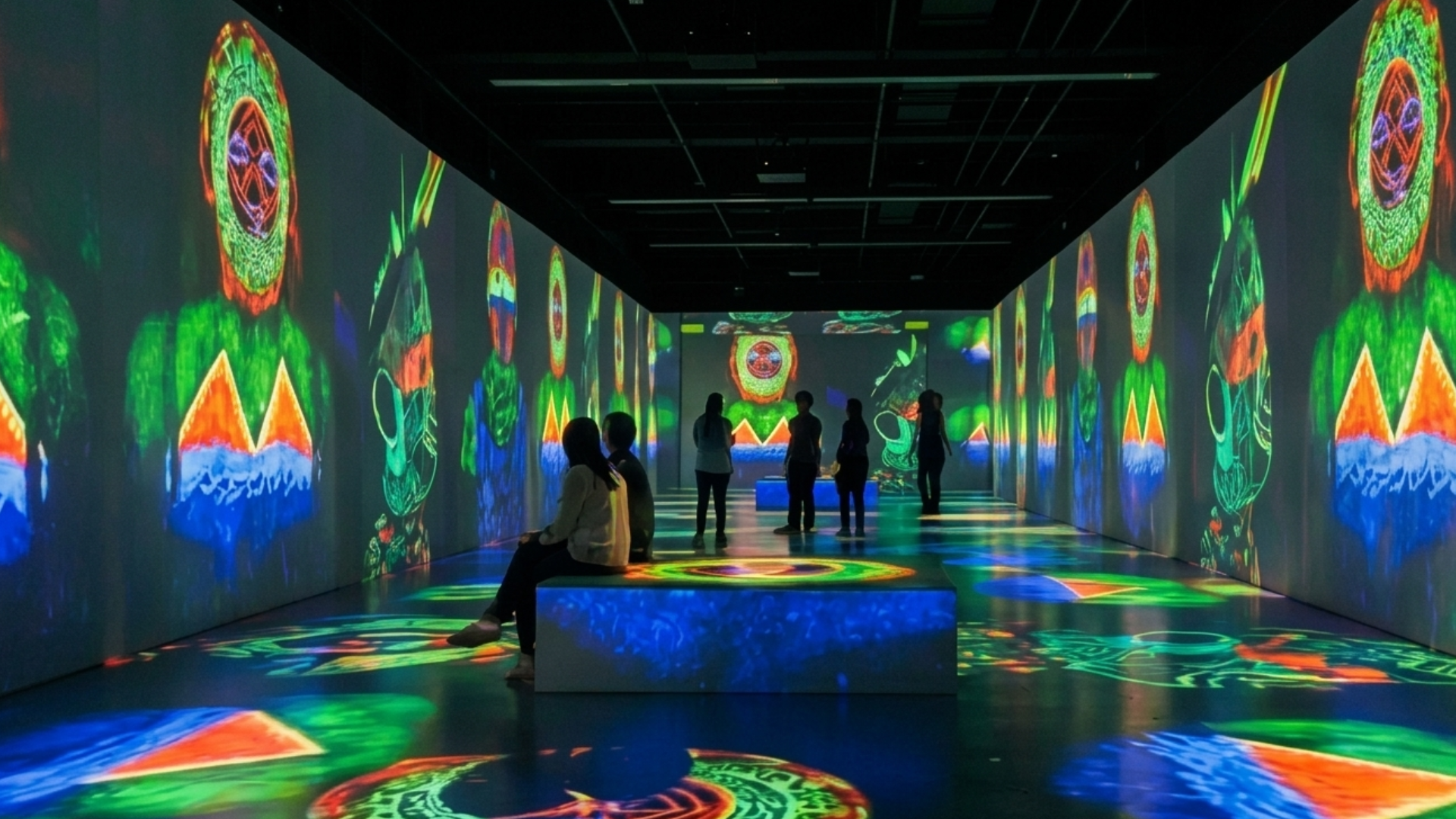 A mostra propõe uma experiência sensorial com projeções em 360°, que transformam obras de artistas amazônicos em ambientes imersivos. As imagens ocupam o espaço expositivo e convidam o público a circular entre paisagens, sons e narrativas ligadas à região amazônica.