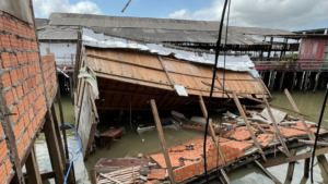 Casa de madeira desaba durante a madrugada na Vila da Barca, em Belém