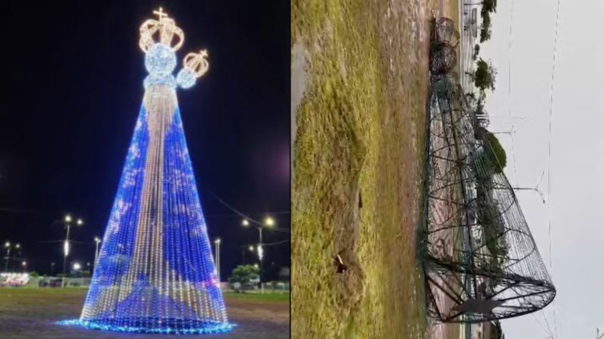 Chuva derruba estrutura em homenagem à Nossa Senhora de Nazaré, em Outeiro