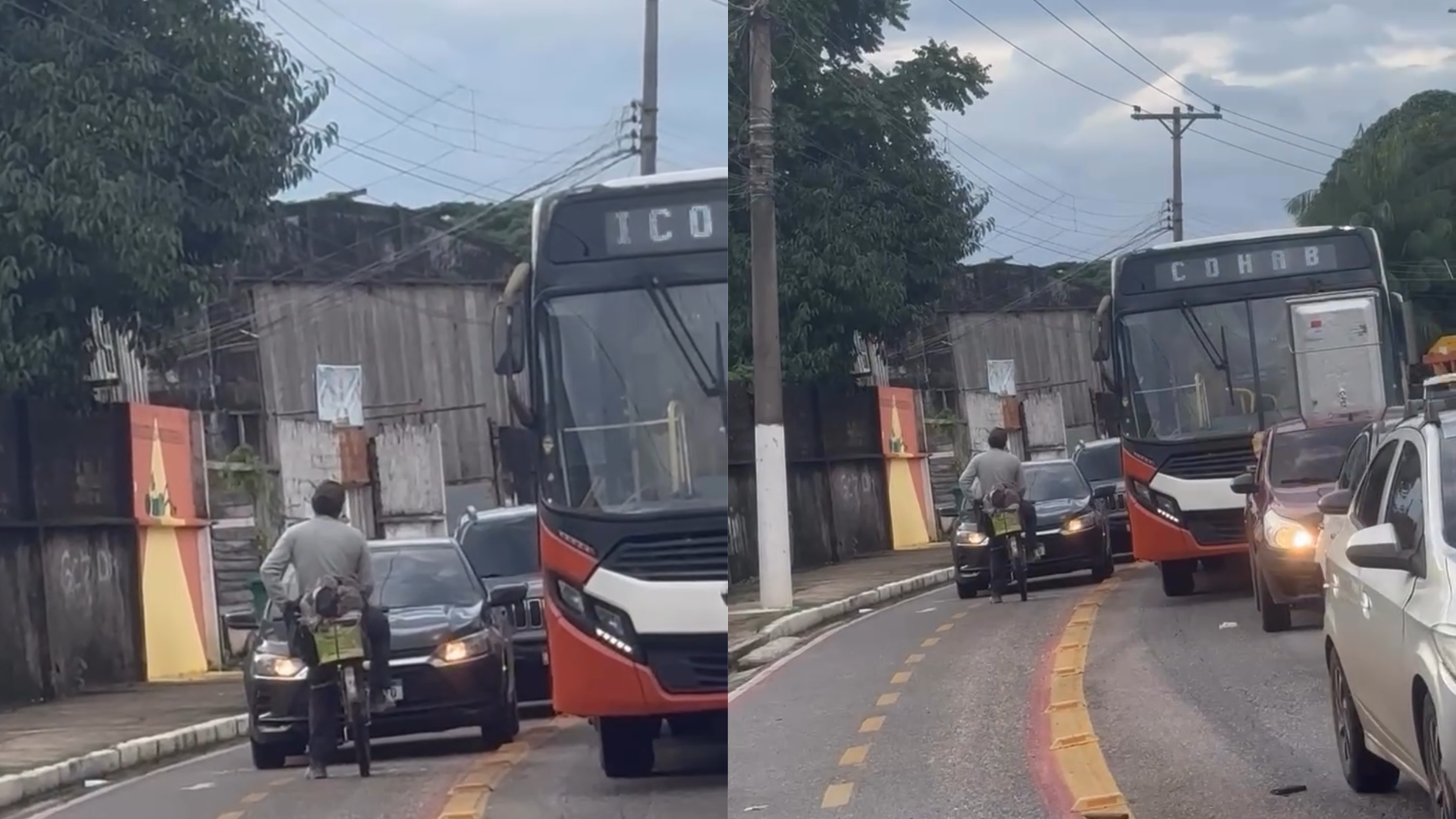 Um registro chamou a atenção nas redes sociais nesta segunda-feira (09), em que uma série de veículos aparece bloqueando a passagem de um ciclista em trecho na Rodovia Arthur Bernardes, em Belém.
