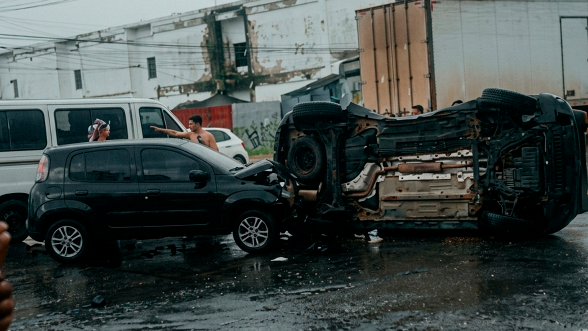 No momento do acidente, chovia na região, fator que pode ter contribuído para a ocorrência.