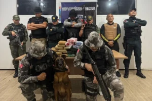 Cerca de 26,5 quilos de drogas foram apreendidos na noite de quinta-feira (26) durante fiscalização em uma embarcação que fazia o trajeto entre Manaus e Belém. A abordagem ocorreu nas proximidades do arquipélago do Marajó, com auxílio do cão farejador “Jay-Z”, que sinalizou a presença de material suspeito.