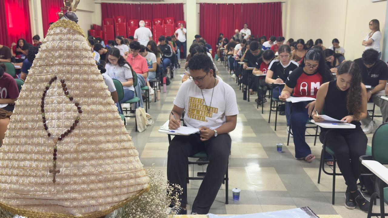 O tema da prova foi “A proteção da casa que partilhamos como ato cristão”, estimulando os estudantes a refletirem sobre o cuidado com a criação e a responsabilidade coletiva com o meio ambiente.