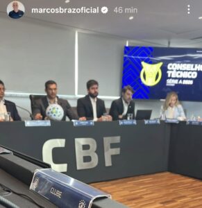 O executivo do Remo, Marcos Braz, está na sede da Confederação Brasileira de Futebol (CBF), no Rio de Janeiro, para a realização do Conselho Técnico do Brasileirão. Braz publicou nas redes sociais imagens de sua participação no seminário que reúne representantes dos 20 times que irão disputar a Série A de 2026.