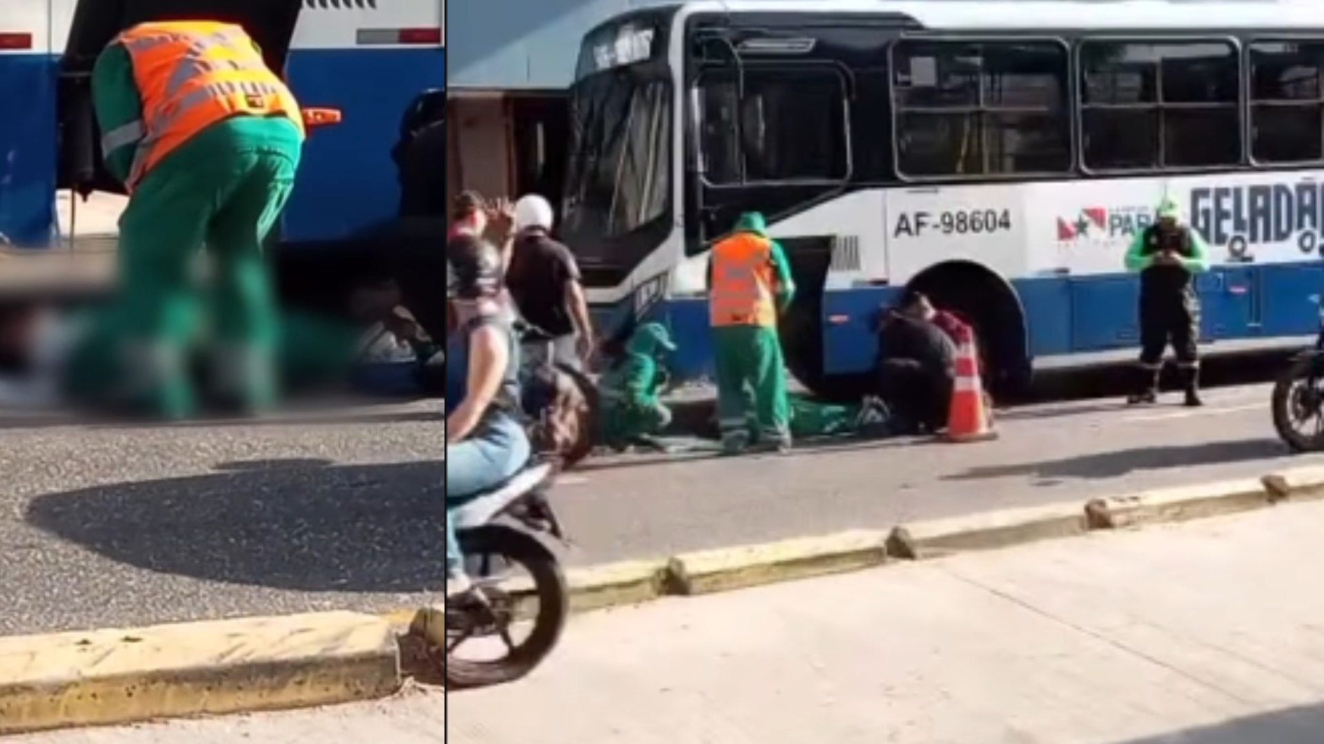 Imagens divulgadas nas redes sociais mostram um acidente na avenida José Malcher, em Belém, na manhã desta terça-feira, 7. Segundo informações, um ônibus geladão atingiu uma funcionária da empresa coletora de lixo, Ciclus.