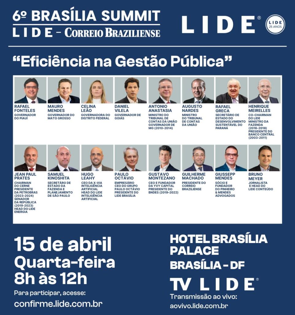 O encontro será realizado no Brasília Palace Hotel, no período da manhã, com transmissão ao vivo pela TV LIDE.