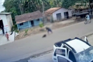 Uma câmera de segurança flagrou um homem, ainda não identificado, matando um cachorro de rua com chutes e pedradas em via pública na na comunidade Jacamim, em Capitão Poço, no Nordeste paraense. O fato teria ocorrido na primeira semana de dezembro, no entanto só agora as imagens foram divulgadas.