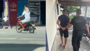 Nas imagens, ele transporta a criança e comete um grave crime de trânsito, de acordo com o Código de Trânsito Brasileiro (CTB), colocando em risco a menor. A motocicleta utilizada por ele também foi apreendida. O indivíduo foi localizado e conduzido à delegacia, onde foram adotados os procedimentos legais cabíveis.