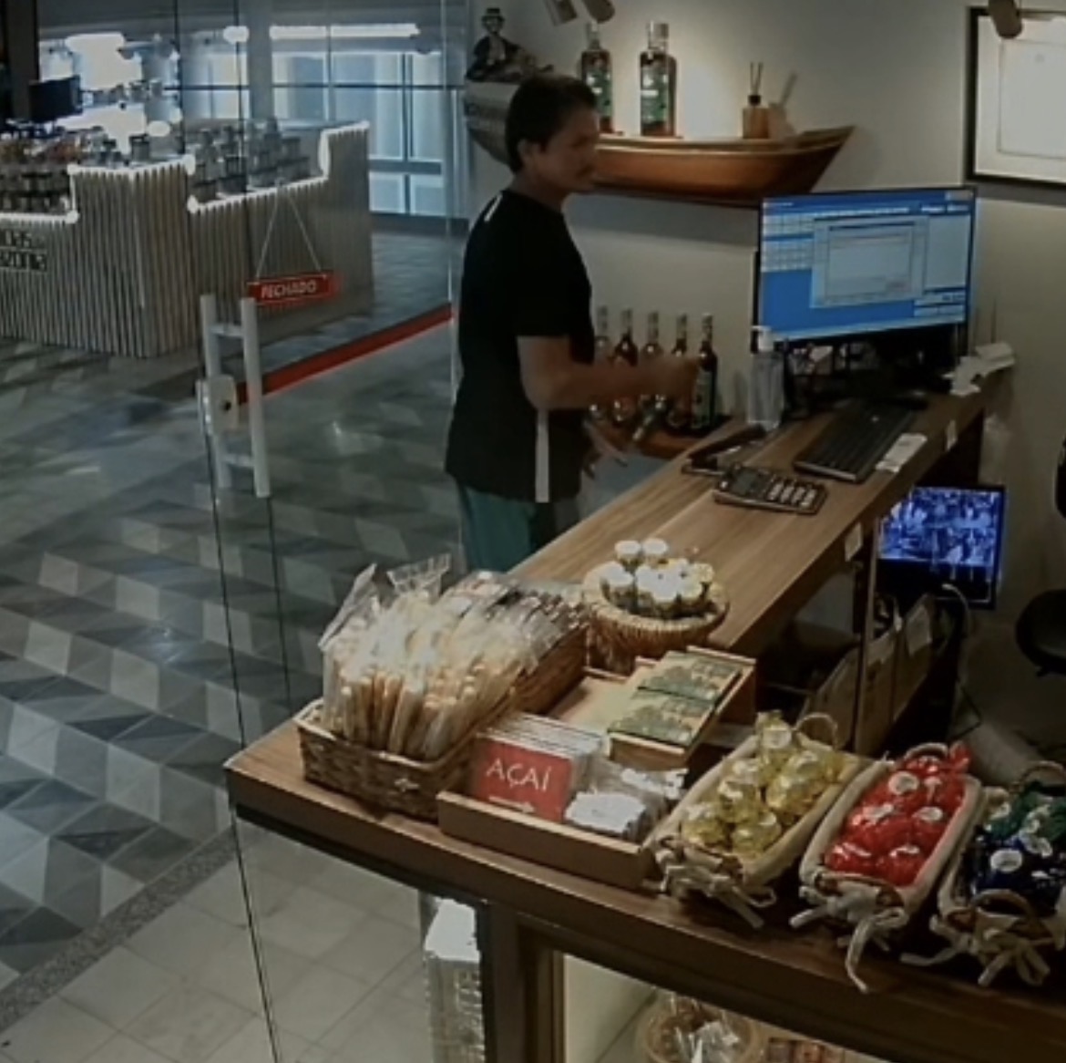 Uma câmera de segurança de uma loja de artigos regionais que funciona dentro do Mercado de São Brás, em Belém, registrou, na tarde do último domingo, 25, um homem furtando duas garrafas de bebida alcoólica do estabelecimento.