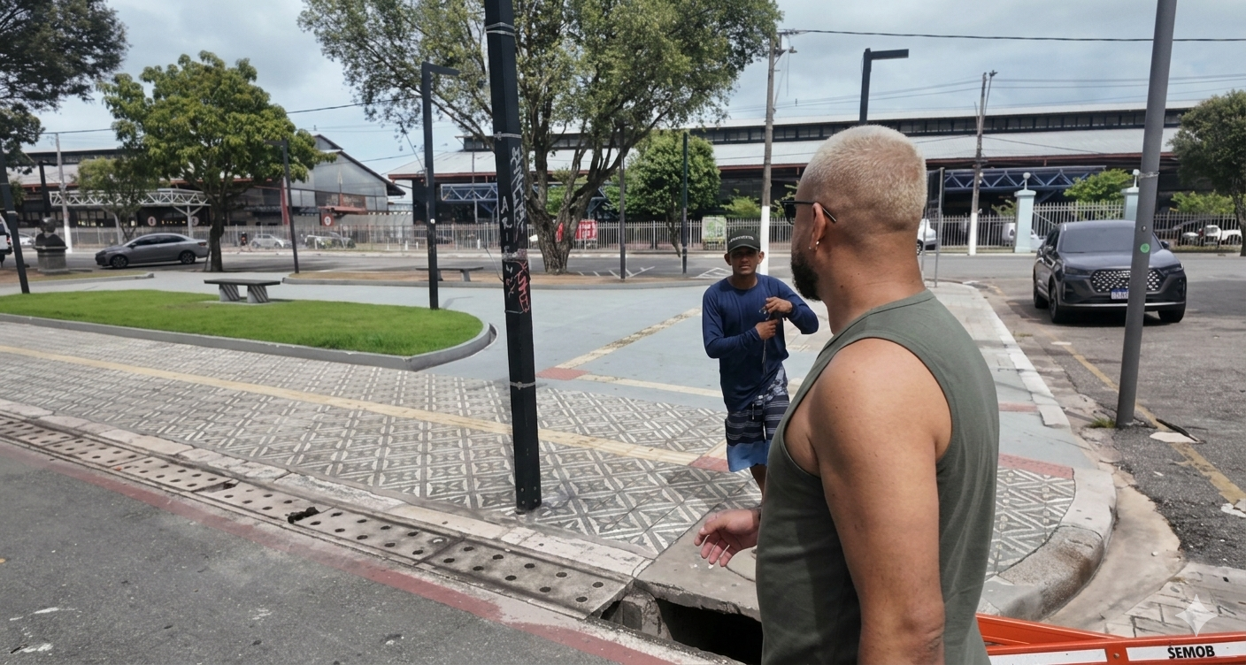 A situação aconteceu enquanto a dupla caminhava e registrava imagens nas imediações da Estação das Docas. No momento em que gravavam um trecho comentando sobre a receptividade dos paraenses e os atrativos da cidade, dois homens se aproximaram com comportamento considerado suspeito.