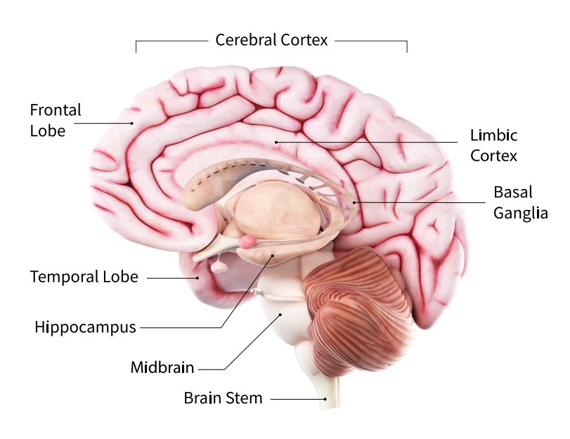 • Córtex límbico, que desempenha um papel importante nas emoções e no comportamento