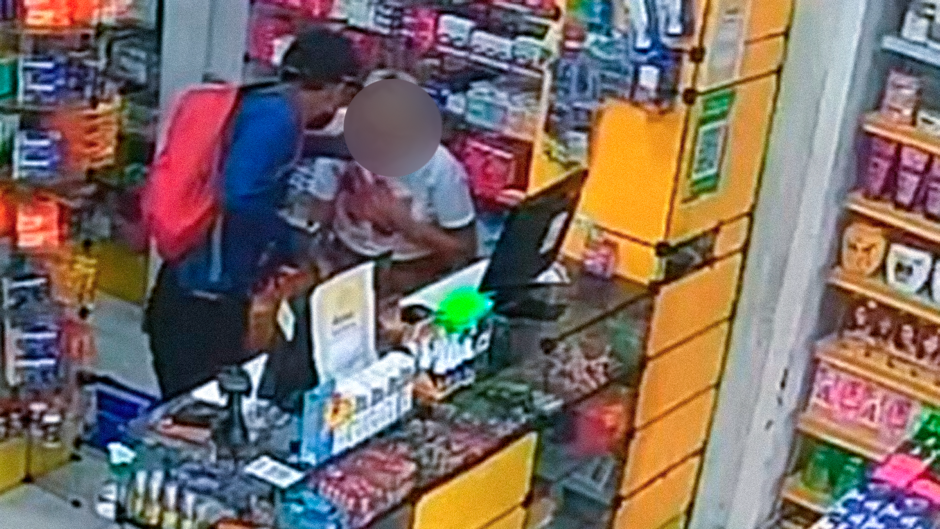 Imagens de câmeras de segurança mostram o momento em que um dos suspeitos entra no local armado, se aproxima da atendente e puxa o cordão que ela usava. A vítima ainda tenta se defender, mas o criminoso efetua o disparo. Ferida, a funcionária deixa a farmácia com as mãos na cabeça. Em seguida, o suspeito foge e se junta a um comparsa que o aguardava em uma motocicleta do lado de fora.