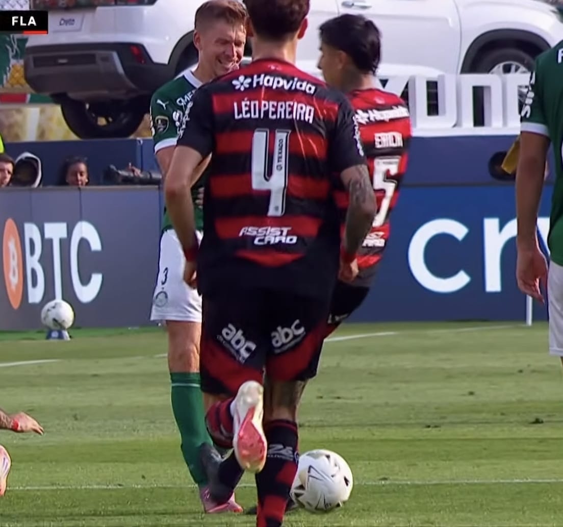 A partida decisiva entre Palmeiras e Flamengo está pegando fogo e aos 28 minutos, a temperatura do jogo subiu, quando uma falta de Bruno Fuchs sobre Arrascaeta desencadeou um princípio de confusão entre os jogadores em campo. O lance irritou Pulgar, que revidou com um chute na canela do jogador do Verdão. O árbitro de vídeo não recomendou ao árbitro a revisão do lance.