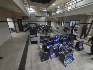 Por volta das 20h, equipes da Polícia Militar saíram as ruas da capital até o endereço do imóvel e se depararam com os com cerca de 25 máquinas caça-níquel, além de usuários e funcionários.