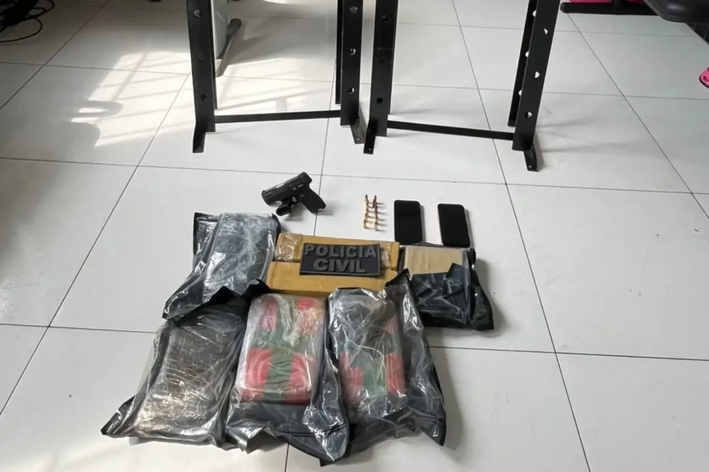 A prisão aconteceu em um endereço no bairro Murucupi, na Vila dos Cabanos, em Barcarena. No local, os policiais apreenderam sete tabletes de substância entorpecente semelhante à maconha, totalizando cerca de oito quilos, além de uma pistola calibre 9 milímetros com numeração suprimida, dez munições intactas, duas prensas hidráulicas e um veículo blindado.