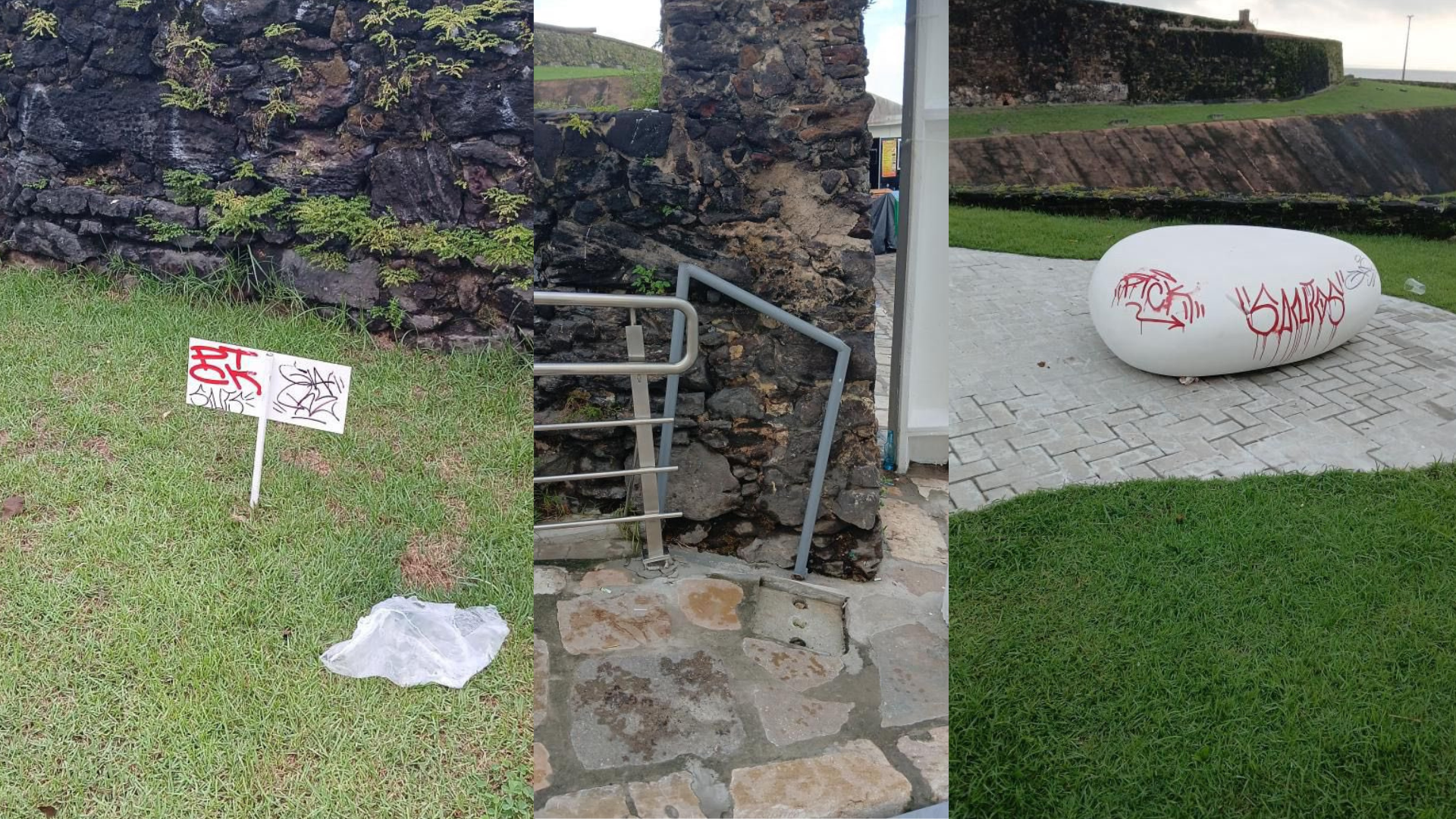 A pedido da PC, a Polícia Científica vistoriou o local e também encontrou pichações em uma pedra, placas e uma rampa de acesso e corrimão que foram danificados. As fachadas de casarões históricos, próximos à rua da ladeira, estão em processo mais minucioso de restauro após adesivos terem sido afixados pelos pichadores.