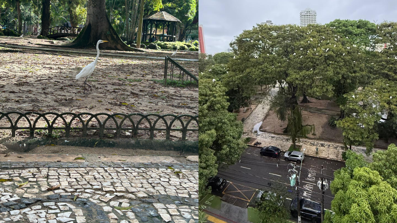 Superpopulação de garças na Praça Batista Campos acende alerta para altos riscos à saúde; autoridades ainda não se manifestaram