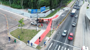 A via contará com duas pistas de mão dupla, cada uma composta por três faixas de rolamento, além de ciclofaixa e passeio acessível. O projeto inclui ainda sinalização horizontal e vertical, paradas de ônibus recuadas com totens informativos e nova iluminação em LED, oferecendo mais conforto e segurança à população.