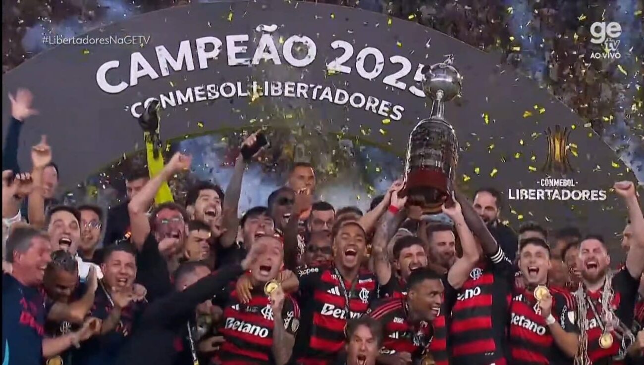O Flamengo celebrou uma grande vitória ao erguer o cobiçado troféu da Copa Libertadores da América. O presidente da Conmebol, Alejandro Domínguez, foi o encarregado de fazer a entrega da taça aos capitães Arrascaeta e Bruno Henrique, que se tornaram tricampeões continentais com o triunfo de 2025.
