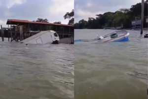 De acordo com outros relatos de testemunhas, durante a descida o caminhão atingiu uma embarcação de pequeno porte que estava atracada nas proximidades. Com o impacto, o barco também acabou afundando logo em seguida. Os ocupantes da embarcação conseguiram sair a tempo, assim como as pessoas que estavam no caminhão.